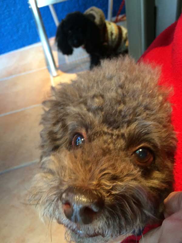 この日、向かいの席にかわいいトイプー(多分男の子)がいて、