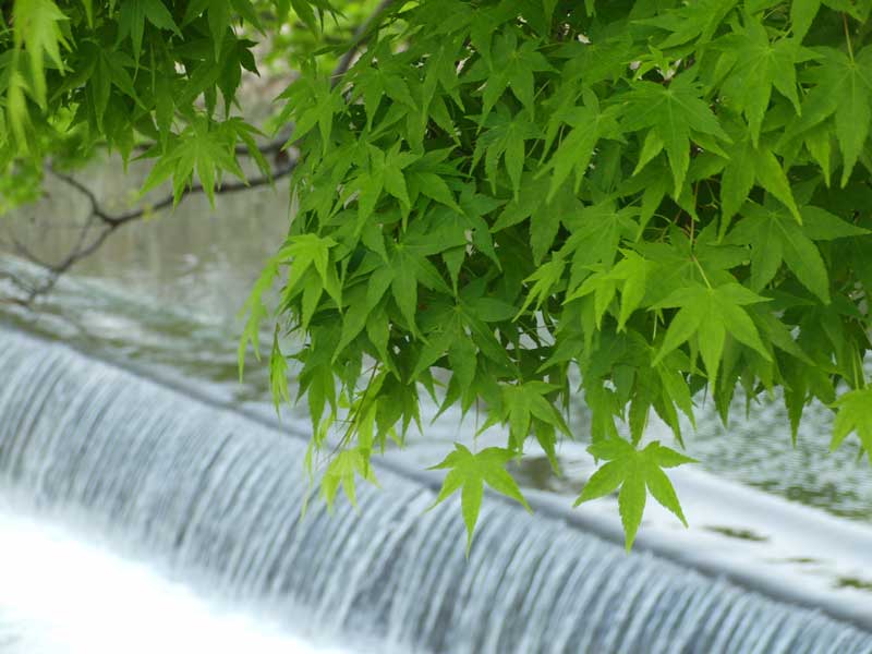 高い建物がなく、自然の中に木製の橋。