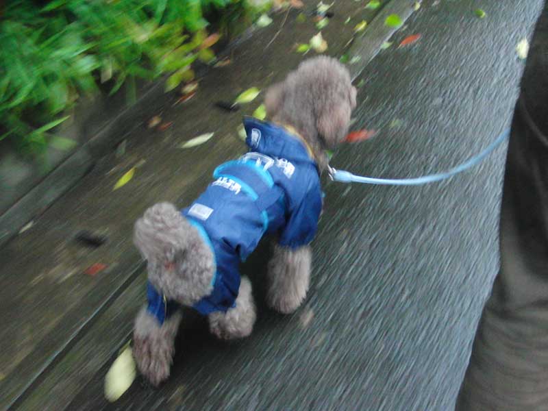梅雨に入ったのでここぞとばかり着せて散歩に行きました!