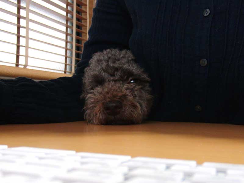 私の脇から顔を出すぷるぷる。むぎゅっ。