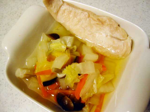 • 白菜、にんじん、かぼちゃ、しめじを煮る