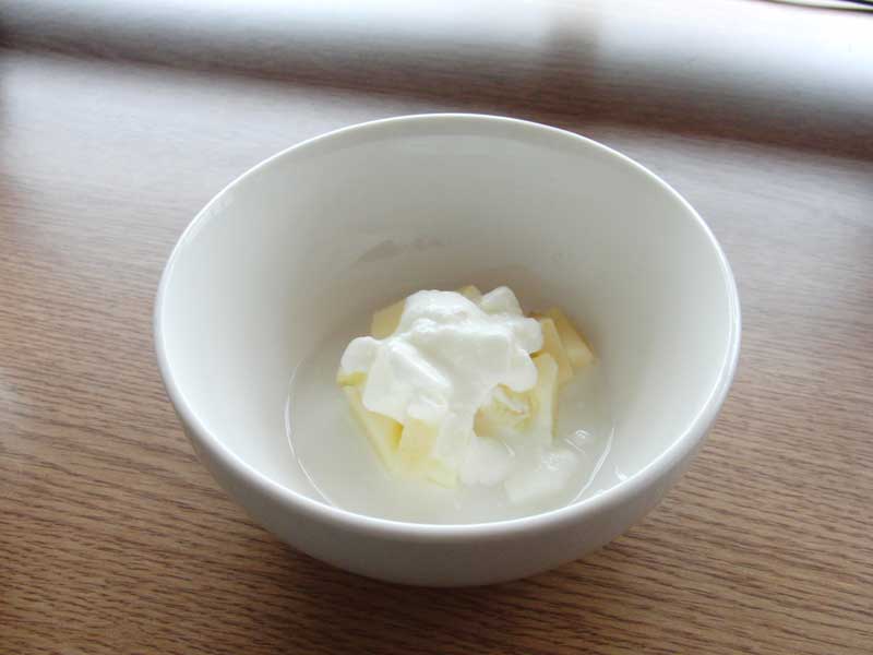 最後は手でかき混ぜて、温度を確かめてからあげています。