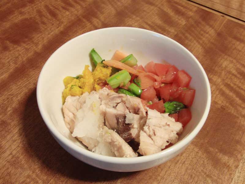 人間用の味付けする前のごはんから取り出しただけの簡単ごはんです。