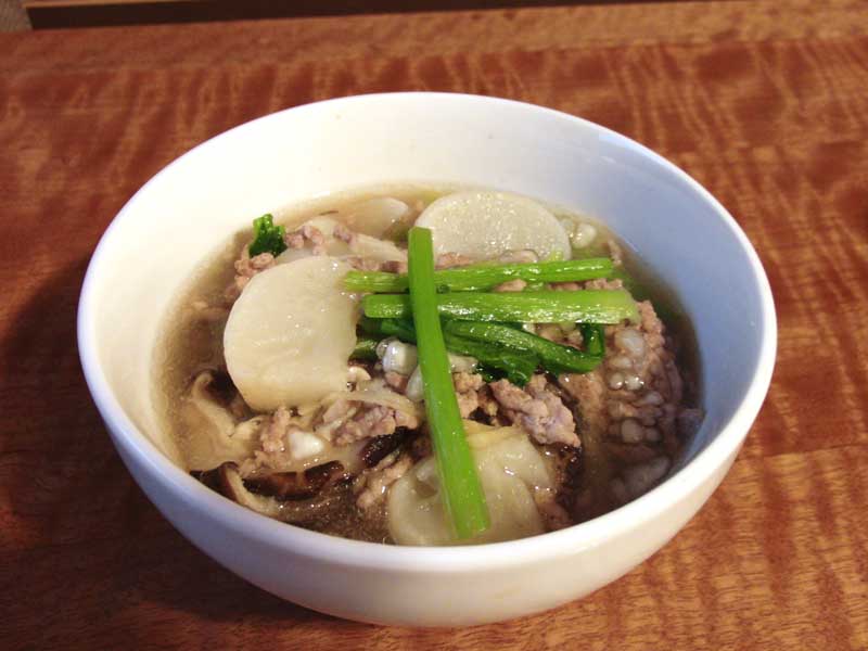 昨日の干し野菜で作ったかぶの挽肉餡かけです。