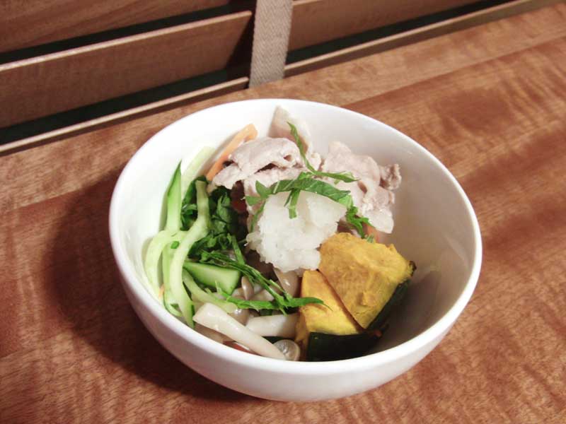 • きゅうりの千切りと大根おろし、しそをトッピング