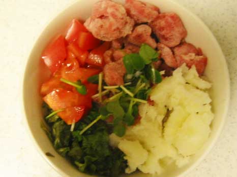 • ターキー(冷凍)、じゃがいも(冷凍)、サニーレタスをチンする