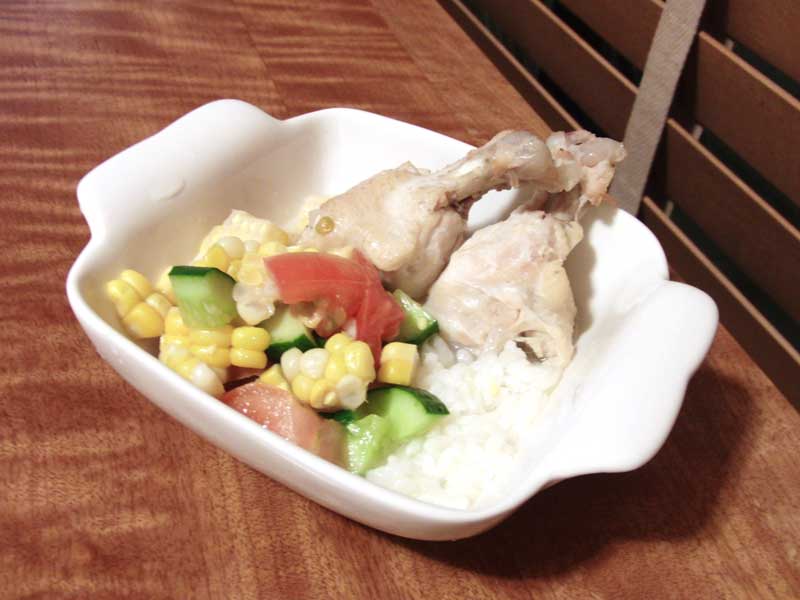 - 鶏手羽を煮たスープにごはんを浸す