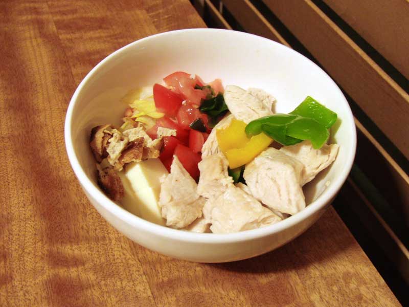 • 鶏肉、ピーマン、パプリカ炒め