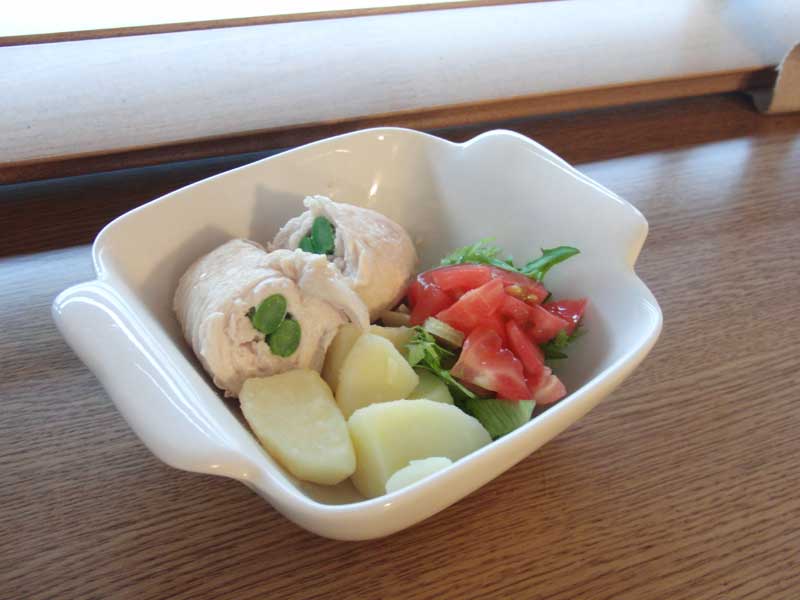 - じゃがいも、にんじん、鶏肉をコトコト煮る