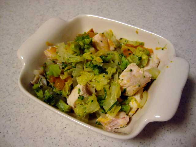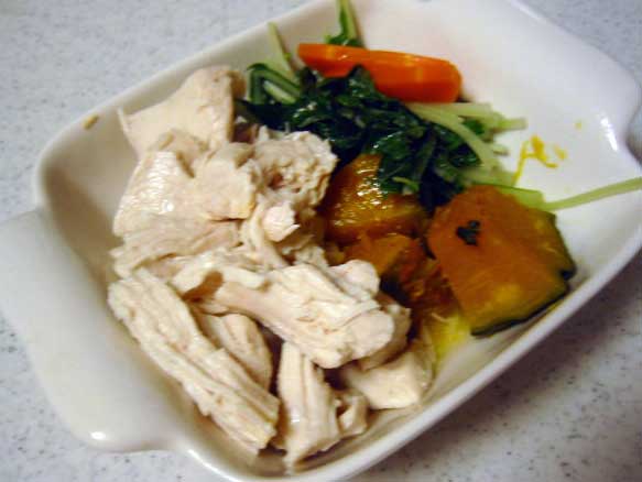 - 人間用の鍋から、にんじんと水菜を取り出しました