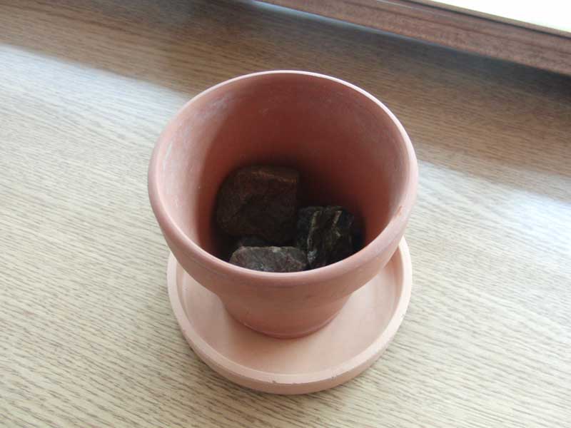 まず小さめの植木鉢に大きめの石を何個か入れて