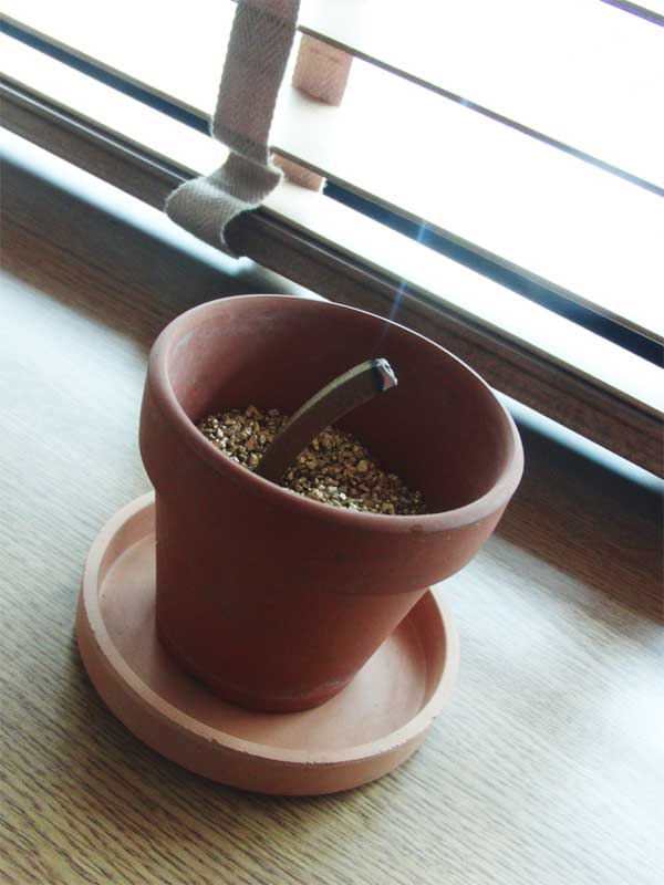 夕方散歩へ行くちょっと前に玄関で焚いてから出かけます。