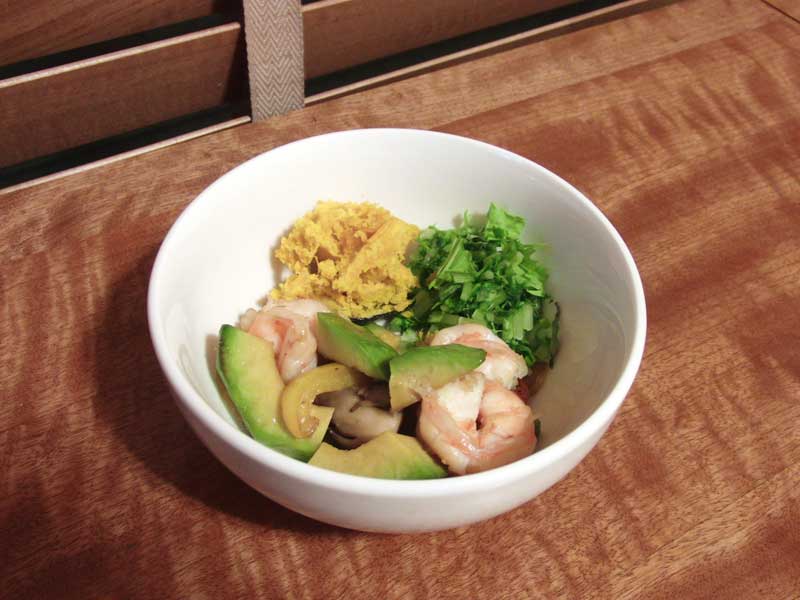 • えび、アボカド、パプリカ、まいたけをじっくり炒める