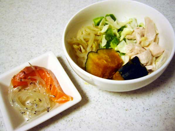 • おなじく冷凍しておいたかぼちゃともやし