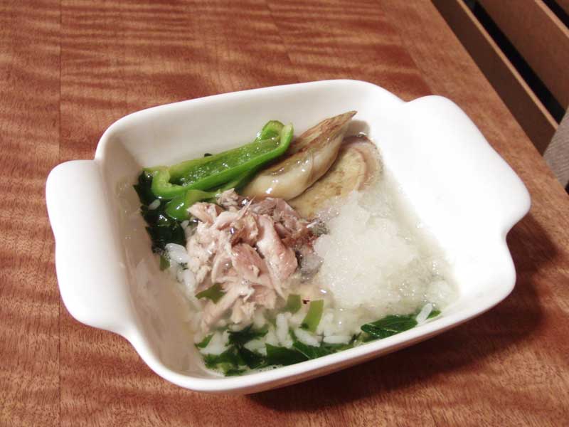 ふぅは一度、大根おろしを雑炊に入れて