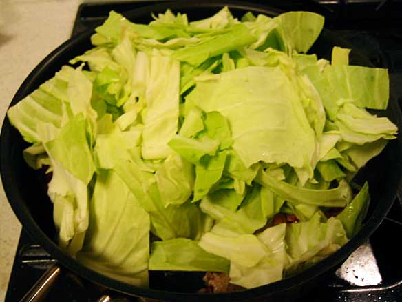 (ウチでは水を入れません キャベツの水分だけで充分)