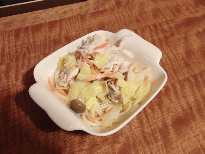- 鶏胸肉は冷凍しておいたものをチンしておく