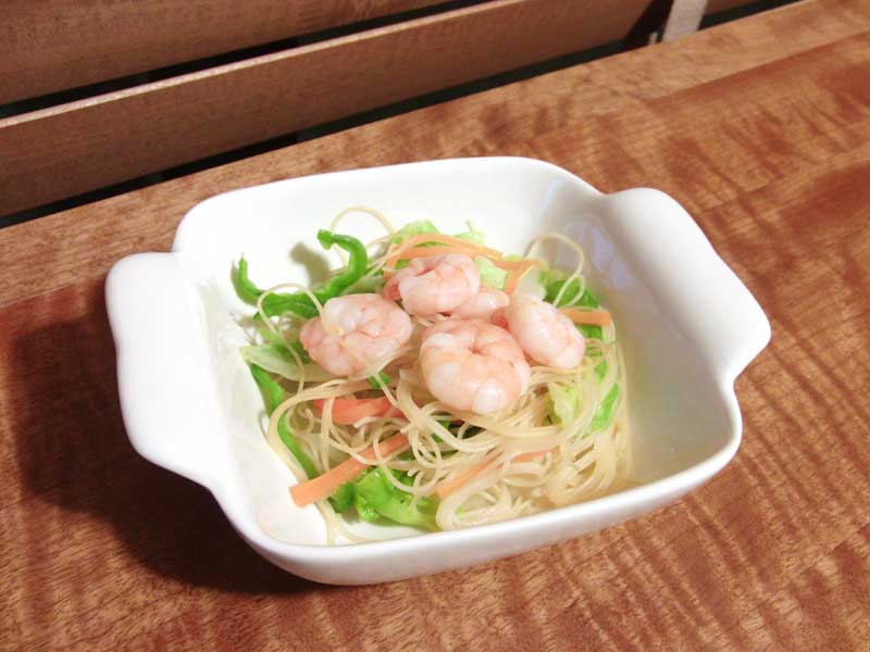 - 鍋に塩を入れ、パスタと野菜(キャベツ、にんじん、しめじ)を茹でる
