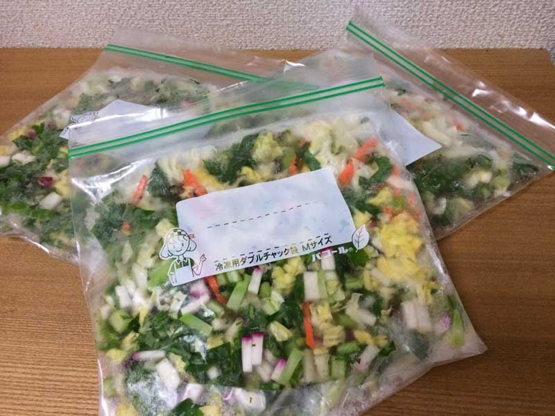 この時は大根とかぶの葉が大量にあったのでそれらと、