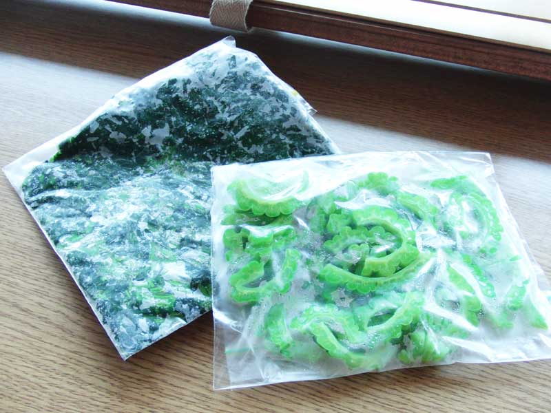 モロヘイヤとゴーヤは茹でて冷凍しました。
