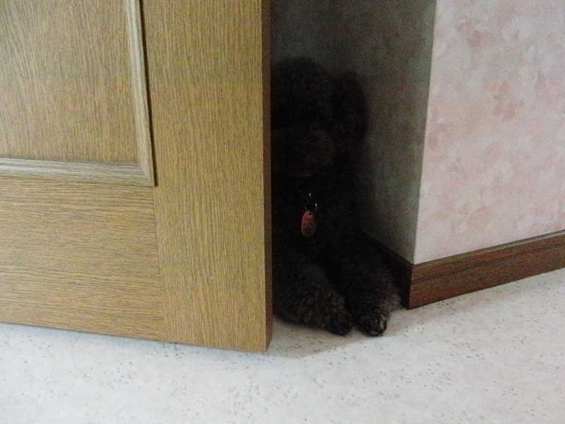 洗面所のドアの裏にいました。