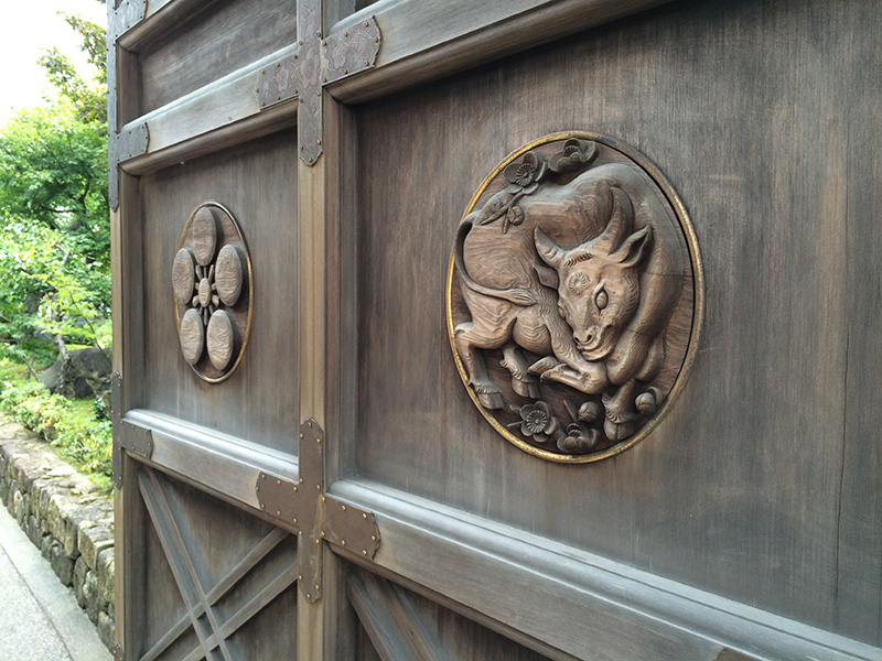 この故事により、境内各所にある神牛の像は、臥牛
